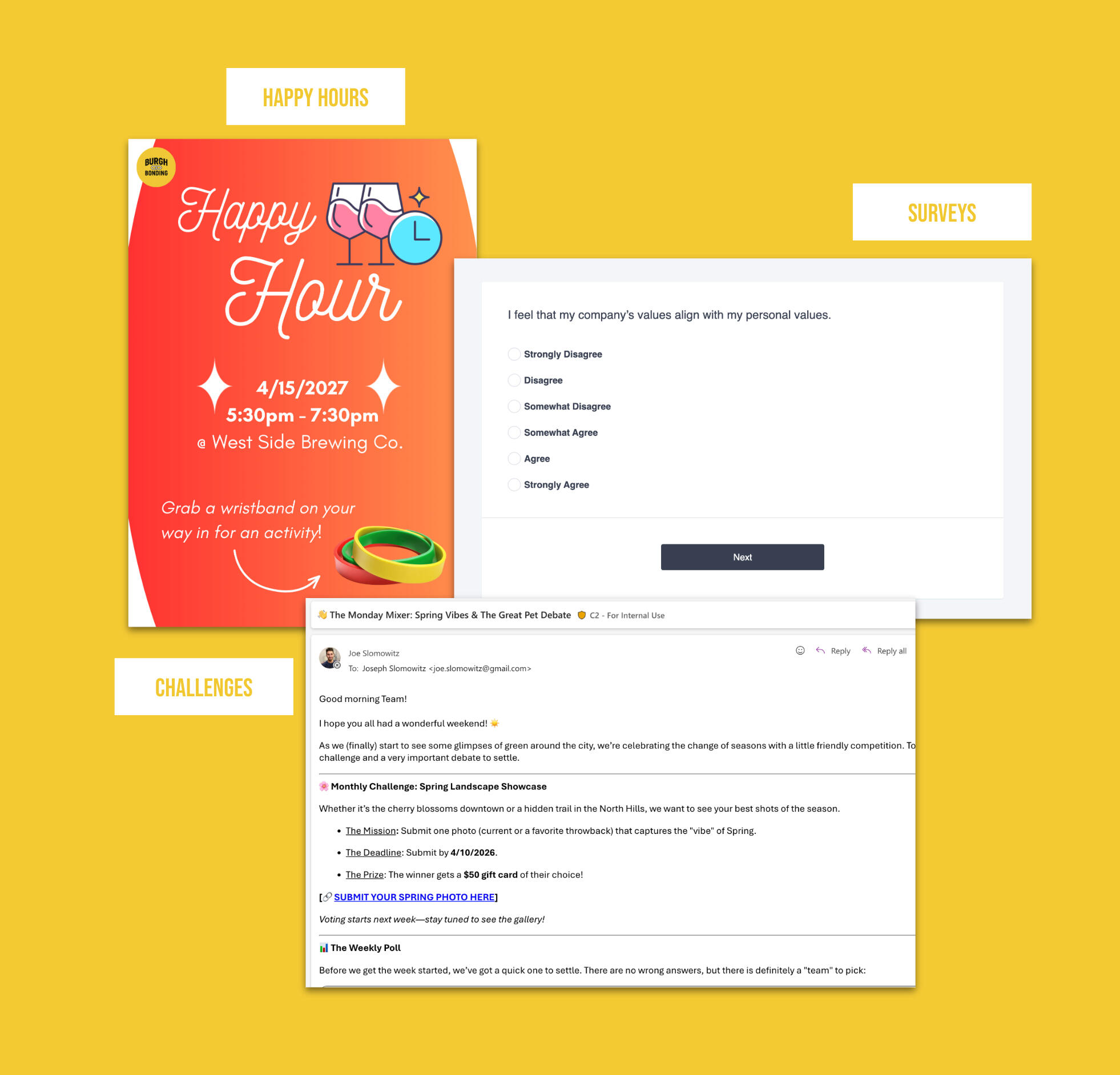 We'll craft and execute a recurring calendar of connection opportunities that move your culture forward.