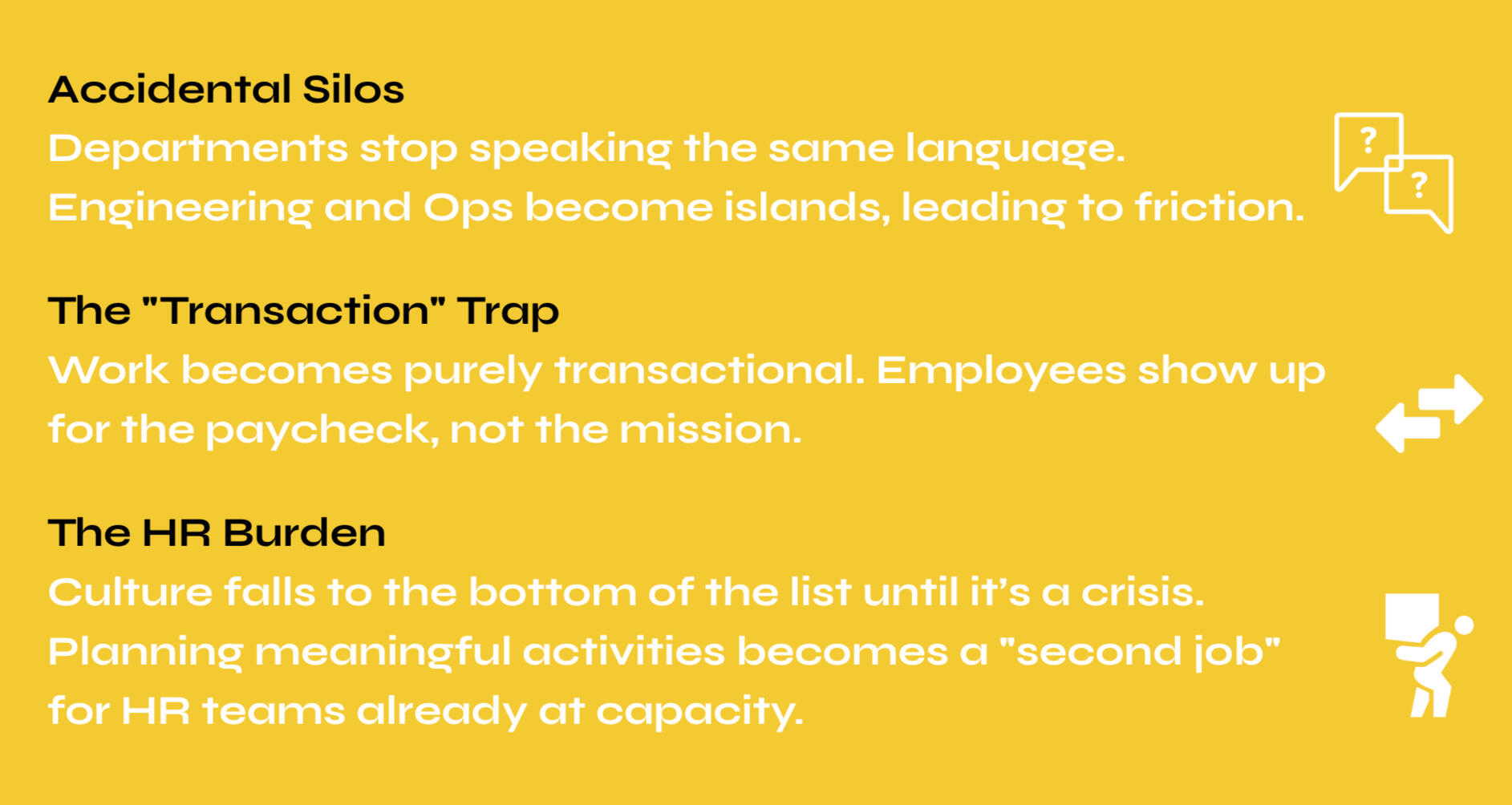 As companies experience growth, they understandably prioritize maintaining that momentum and often fail to maintain the culture they’ve built.When connection is neglected, the “Culture Tax” accumulates: