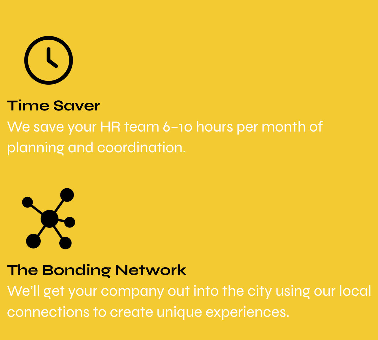 You scale the company, we’ll grow the culture. Offload the HR burden of planning, coordinating, and executing team engagement to a dedicated partner. Ready to drive your culture forward without the spreadsheets? Let's chat.